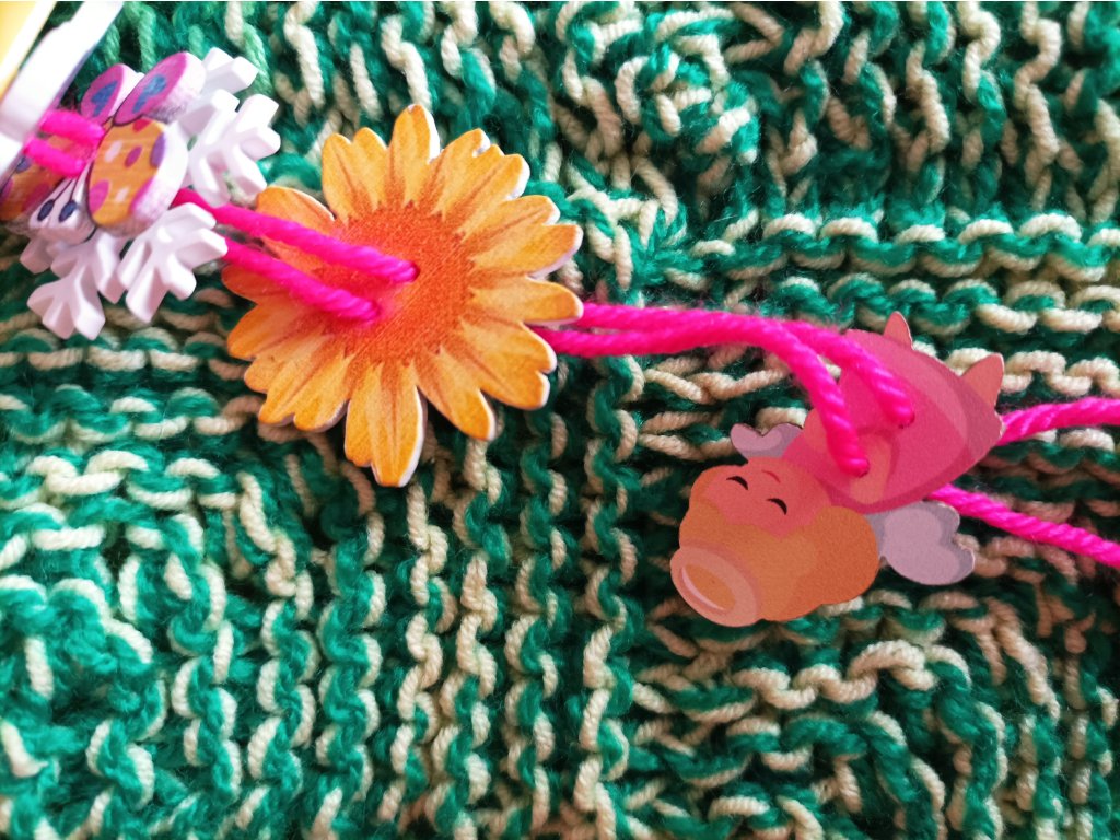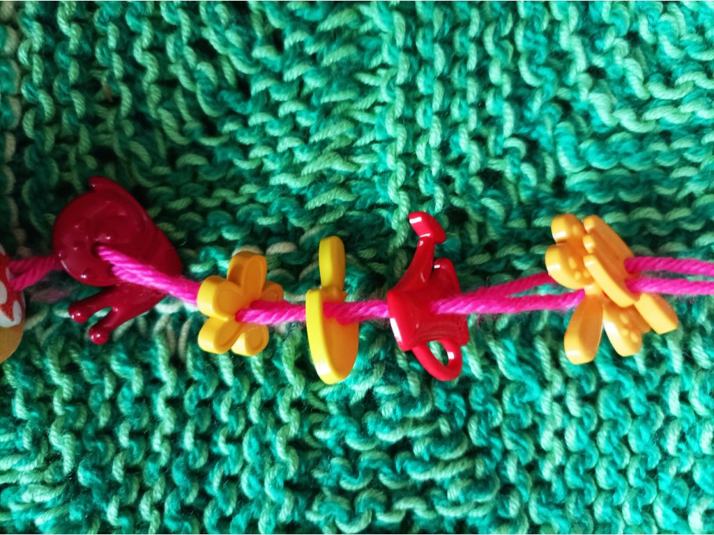 - 4. 🧶zelenkavá -zaměřuje se na provlékání a jemnou motoriku -korálky a různé tvary navlékání