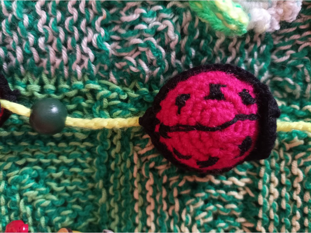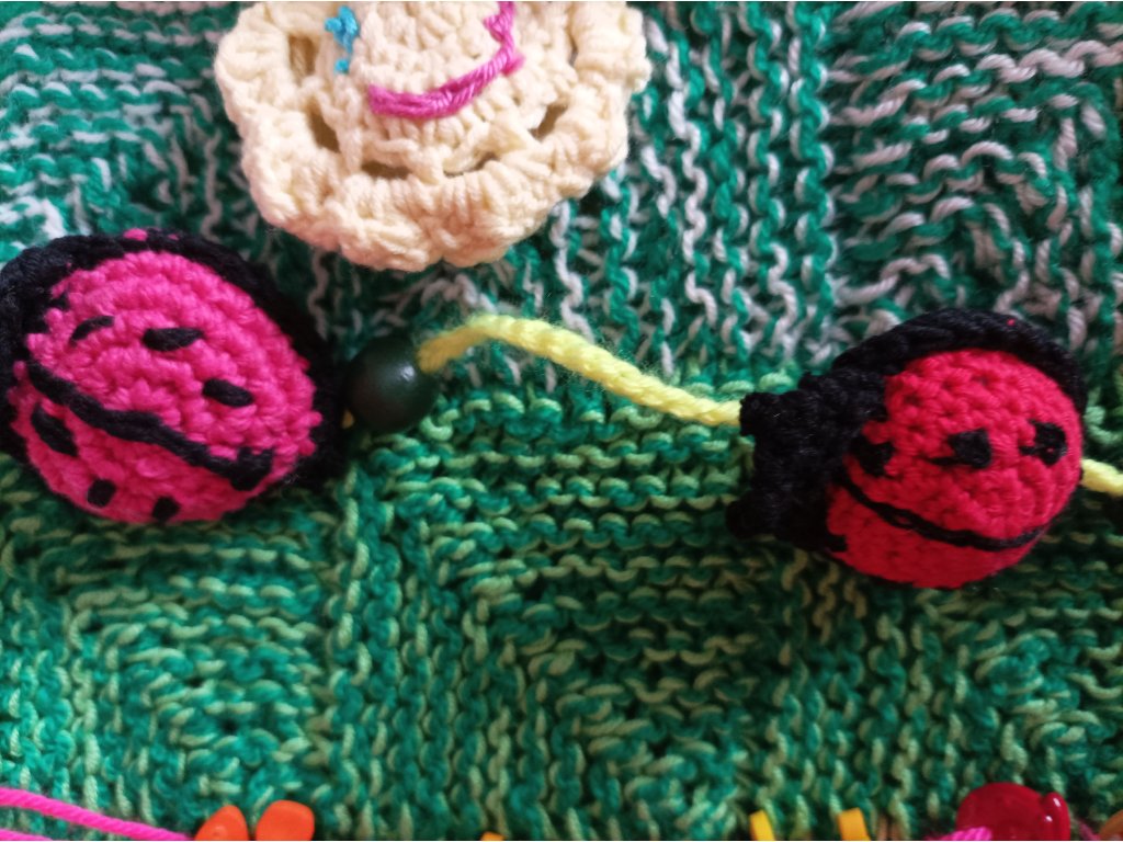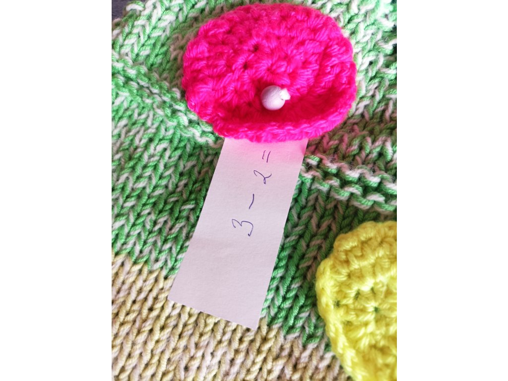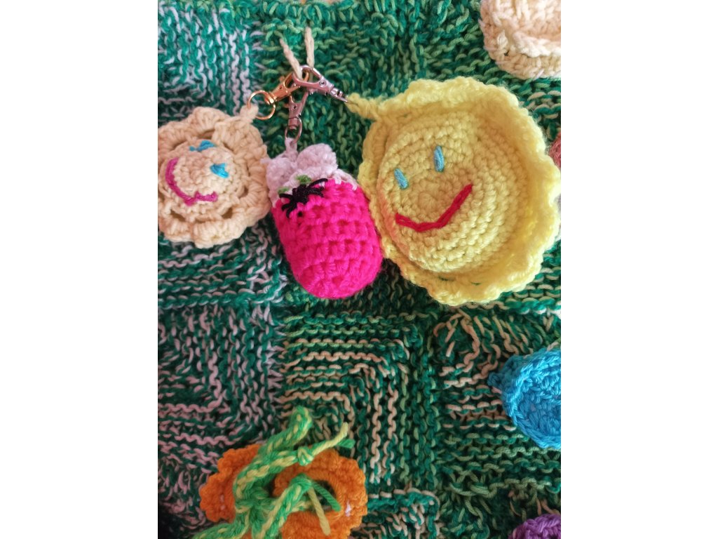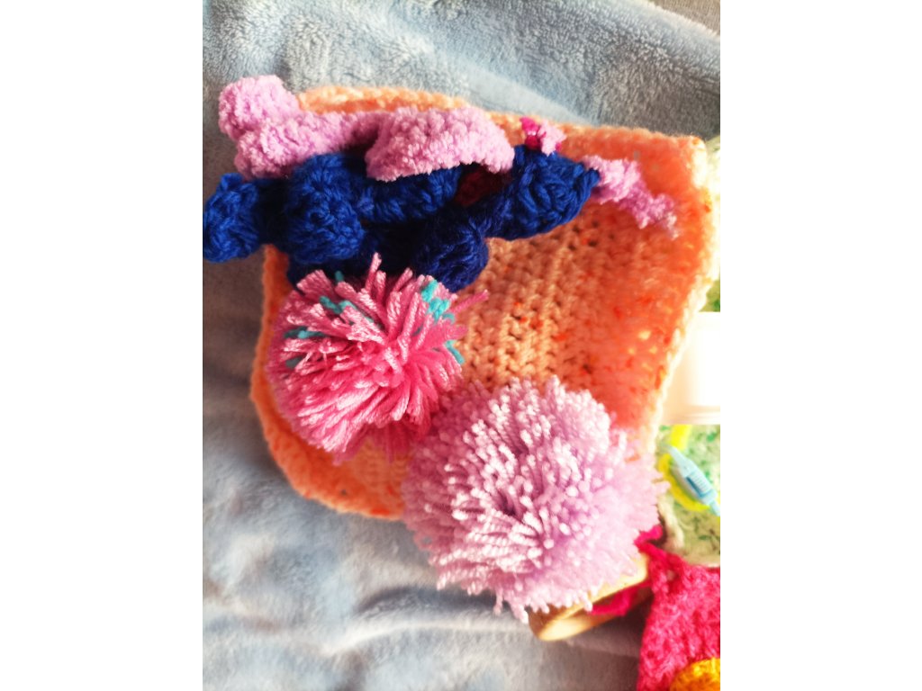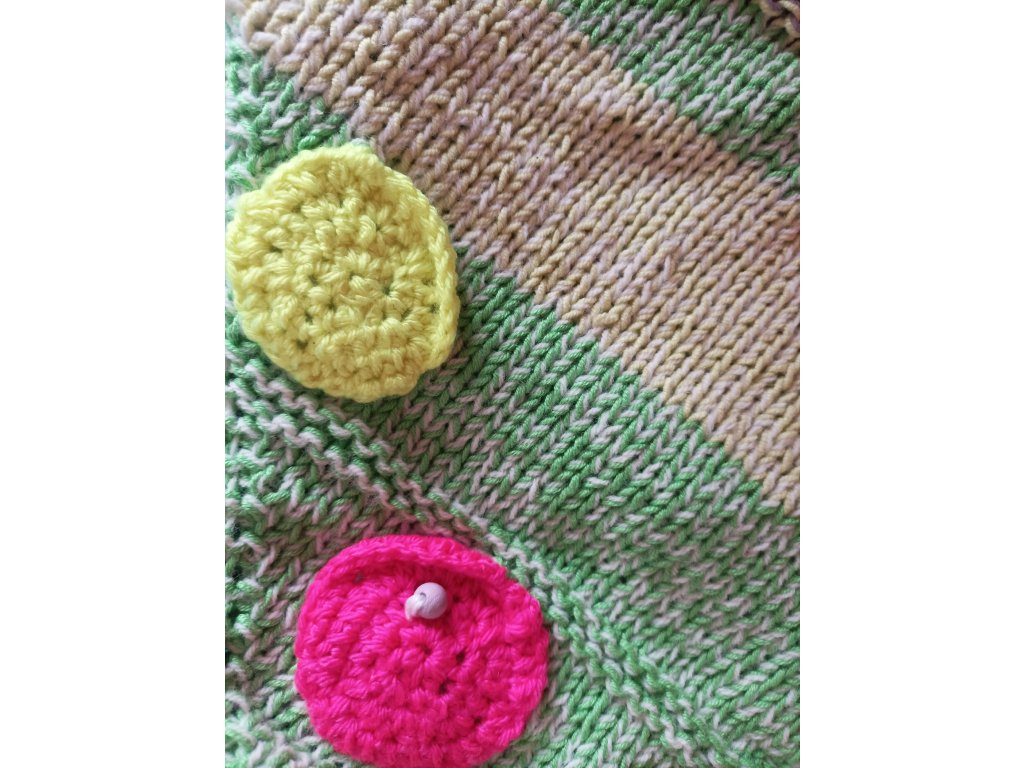 Ručně háčkovaná dečka určená pro děti v předškolním věku a první třídu – ale potěší i seniory jako aktivizační pomůcka.