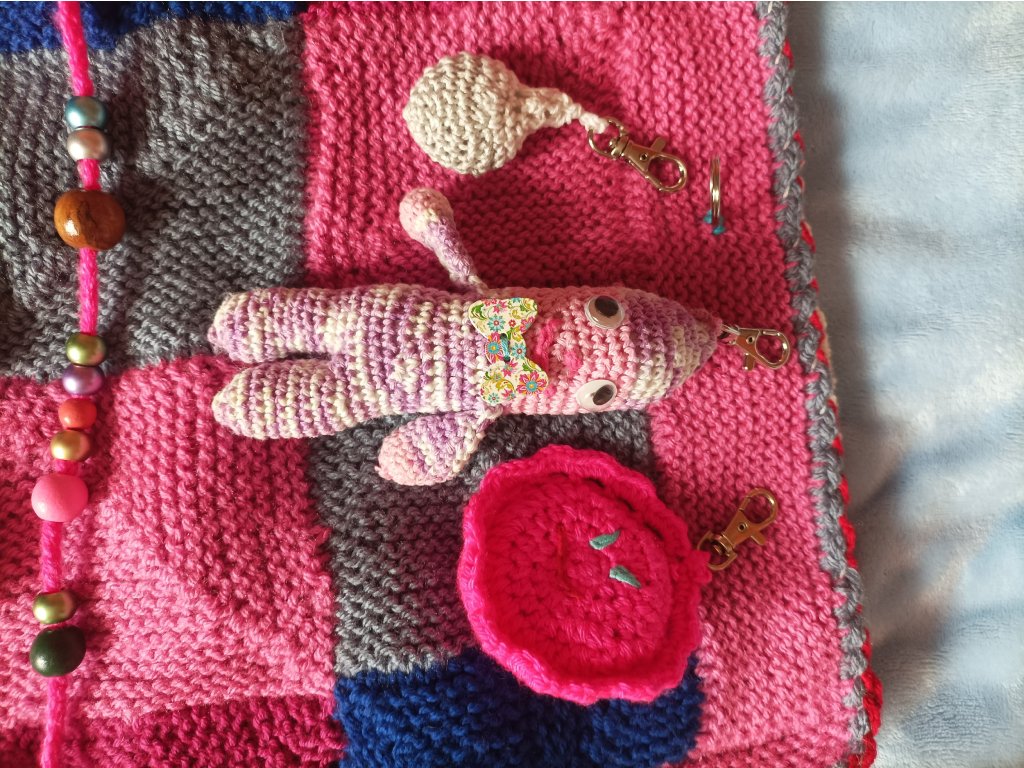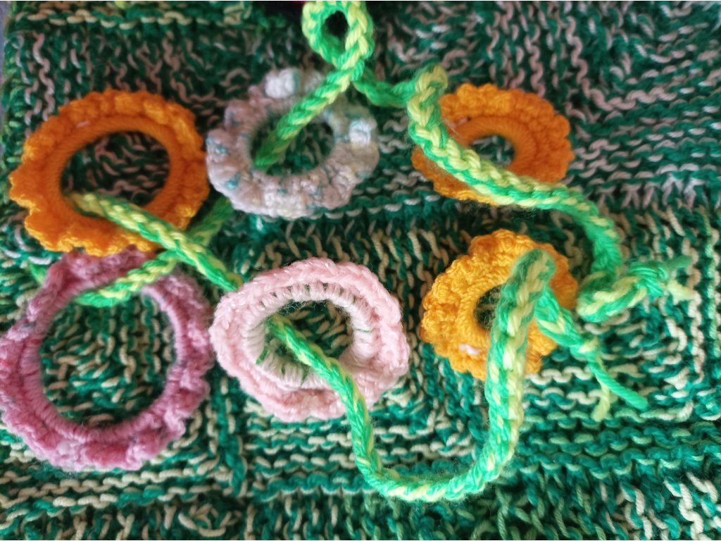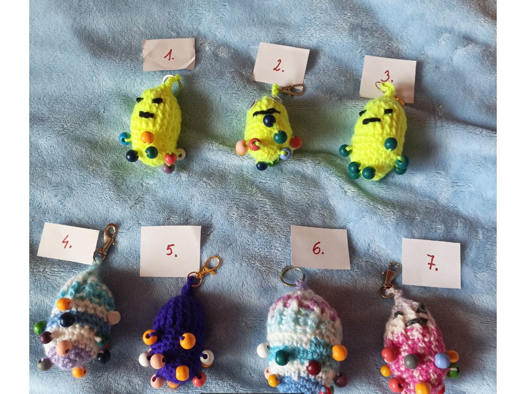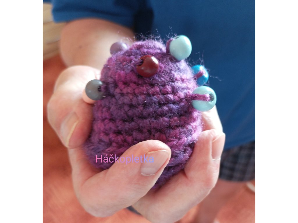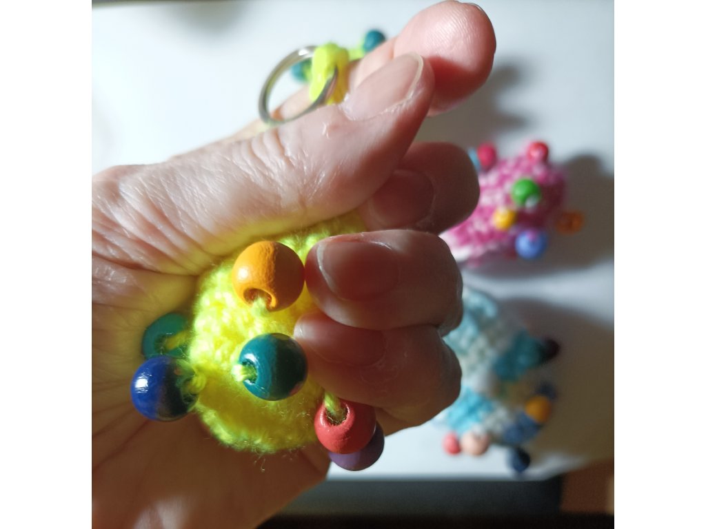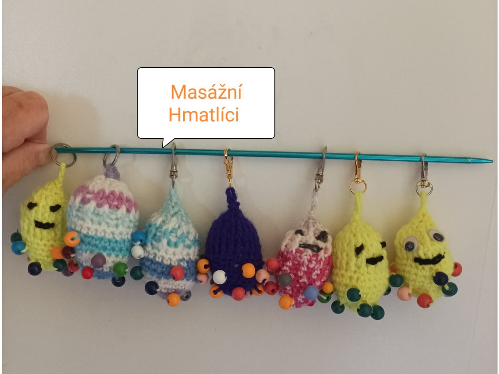 - 10.Hmatlíci 1-7, háckované s korálky, na masáž rukou i jako antistresové pomůcky.