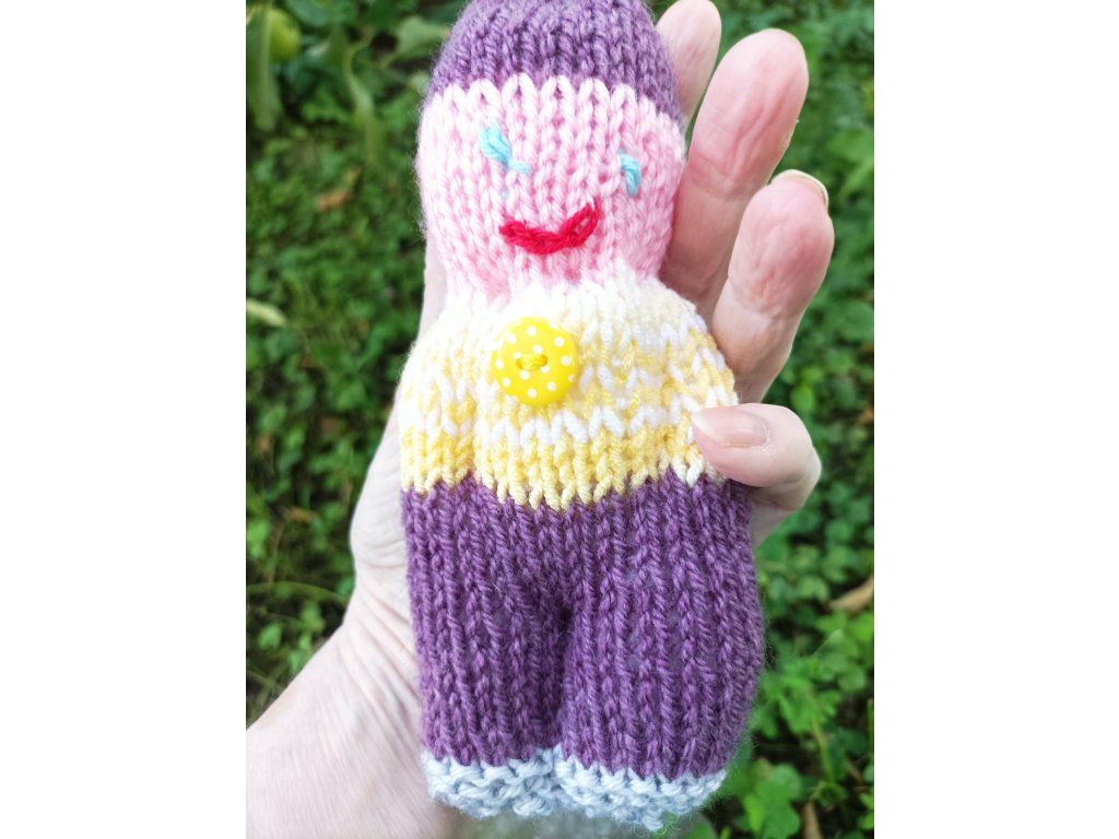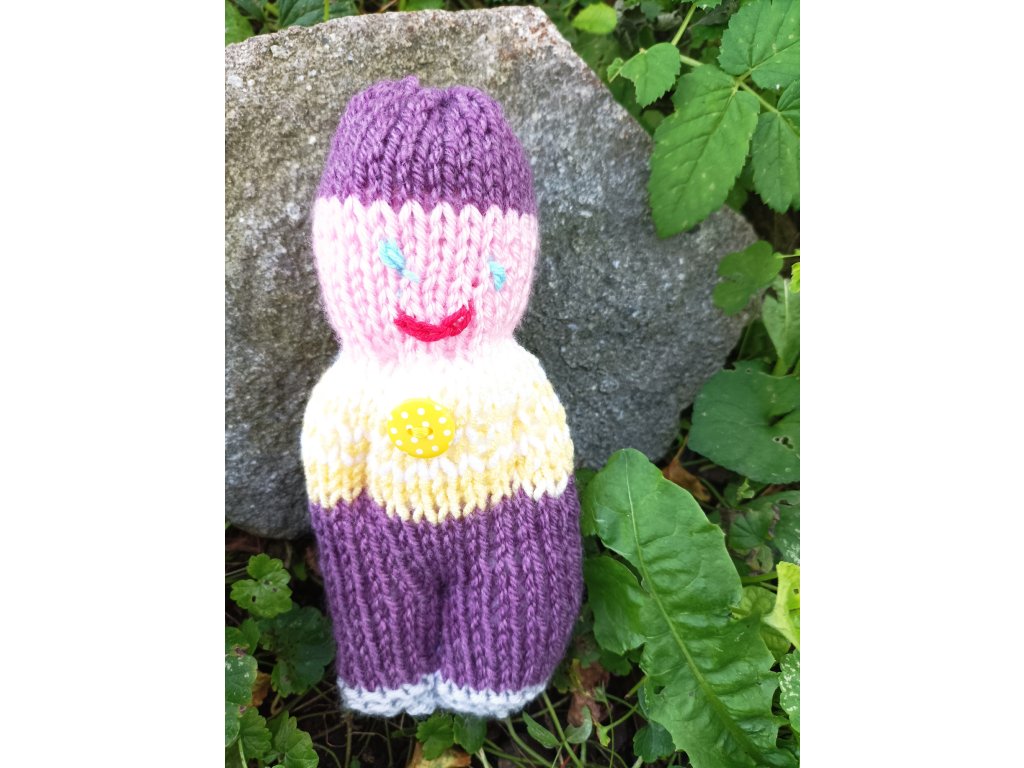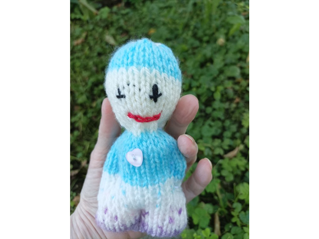 -Panáčci vzpomínek - pletení panáčci z akrylové příze, uvnitř dutinková výplň, zdobení korálky, knoflíčky,cca12-18 cm.