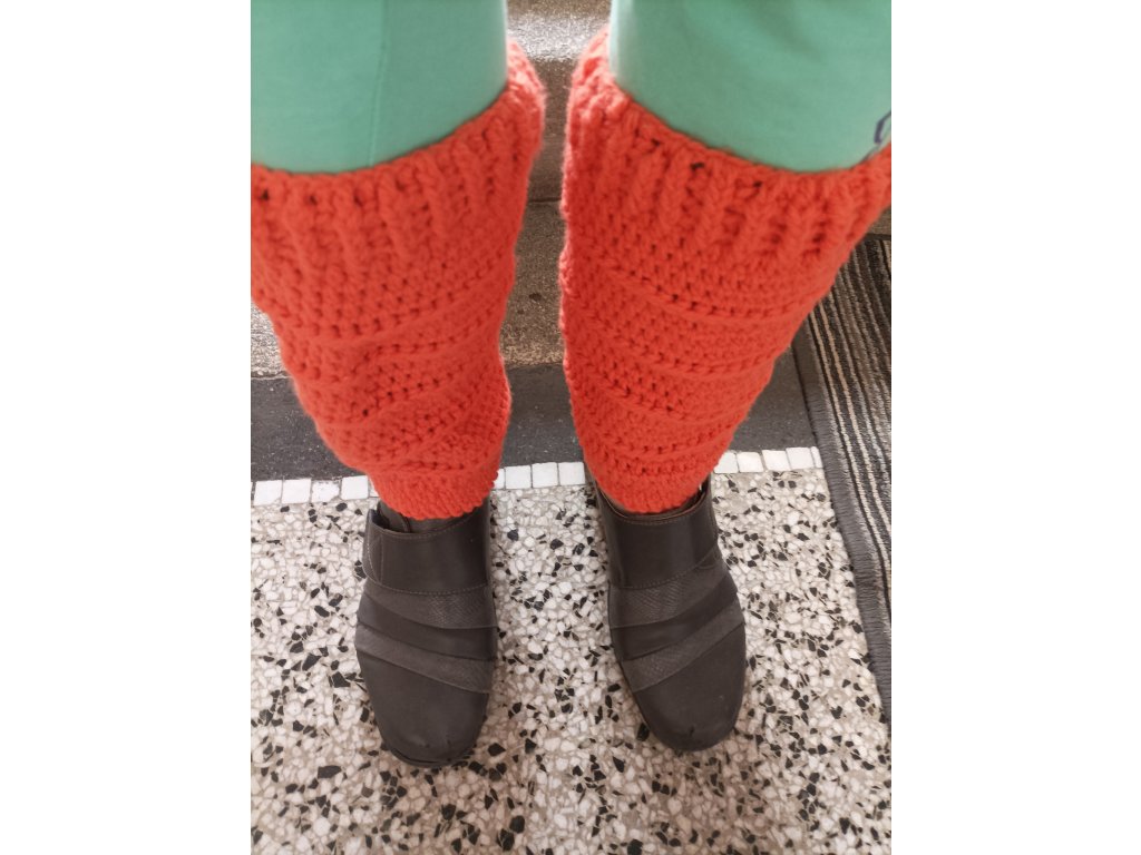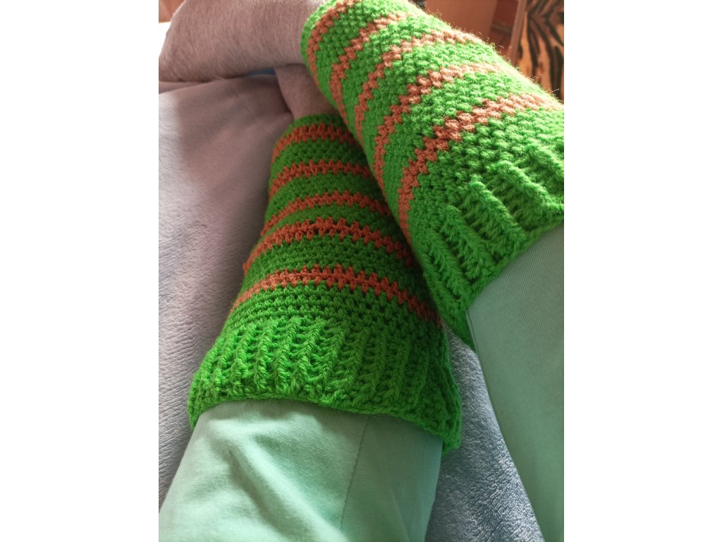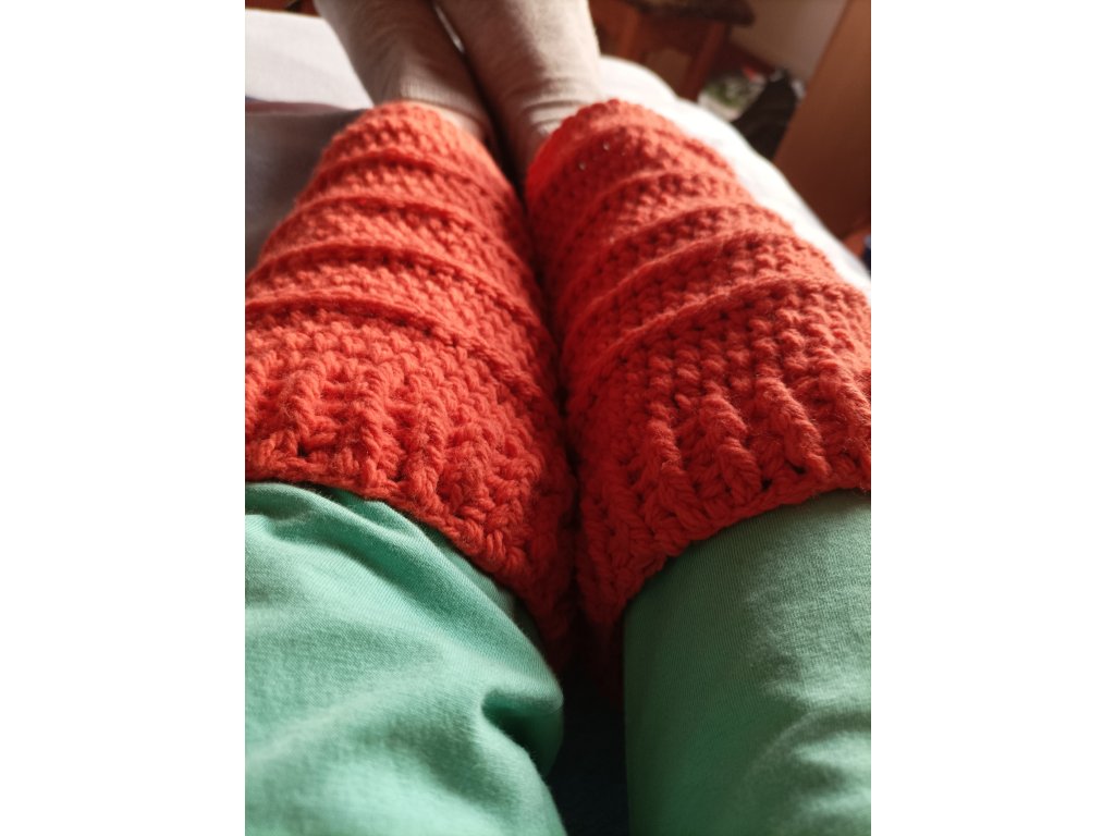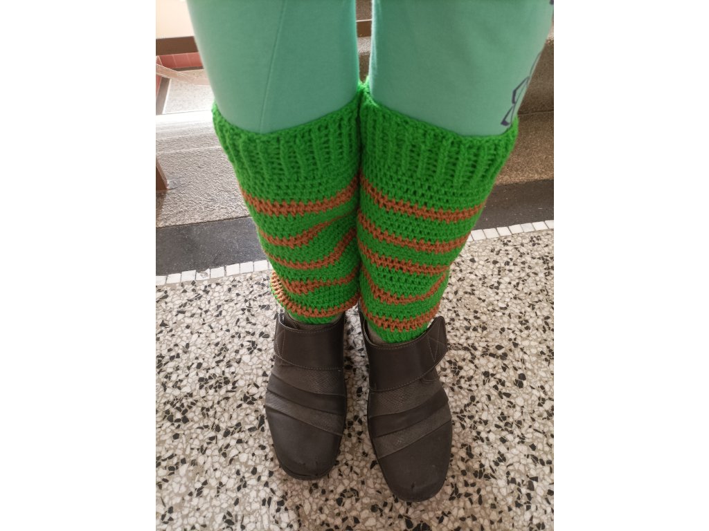 17. Zrzulky - návleky na nožky z akrylové příze, obvod lýtka 36 cm, výška 25 cm.