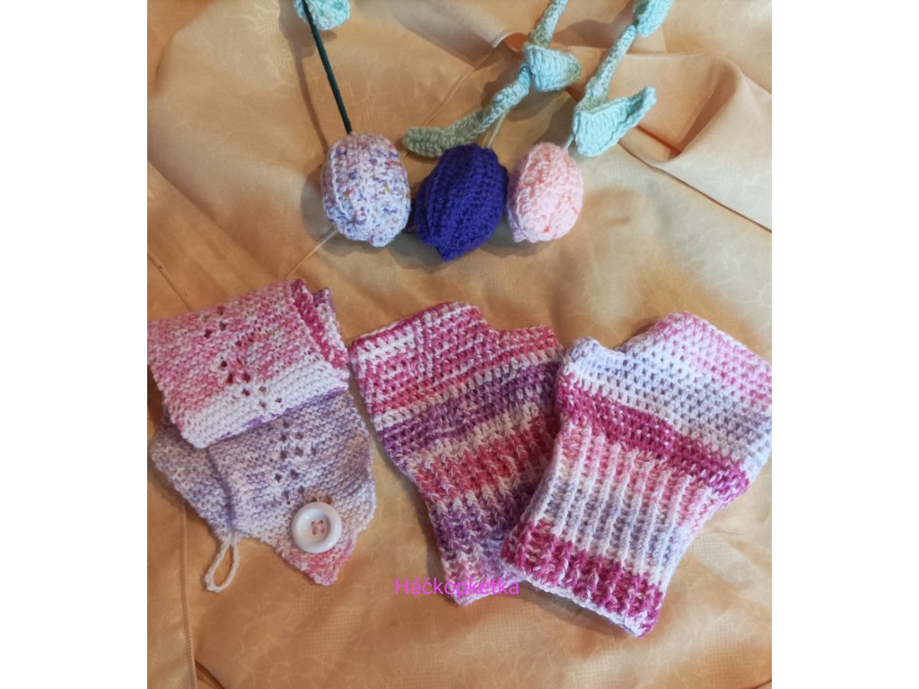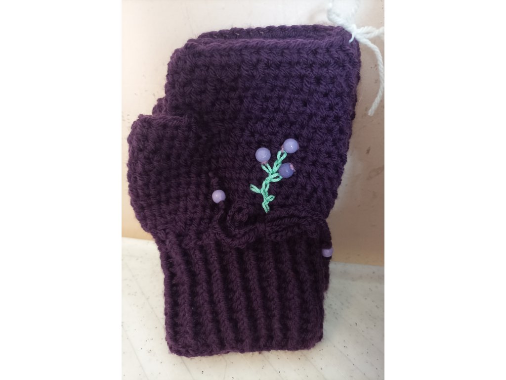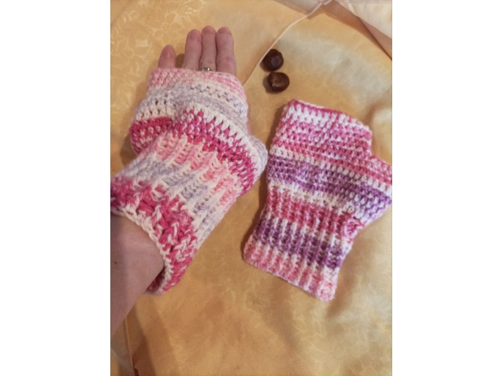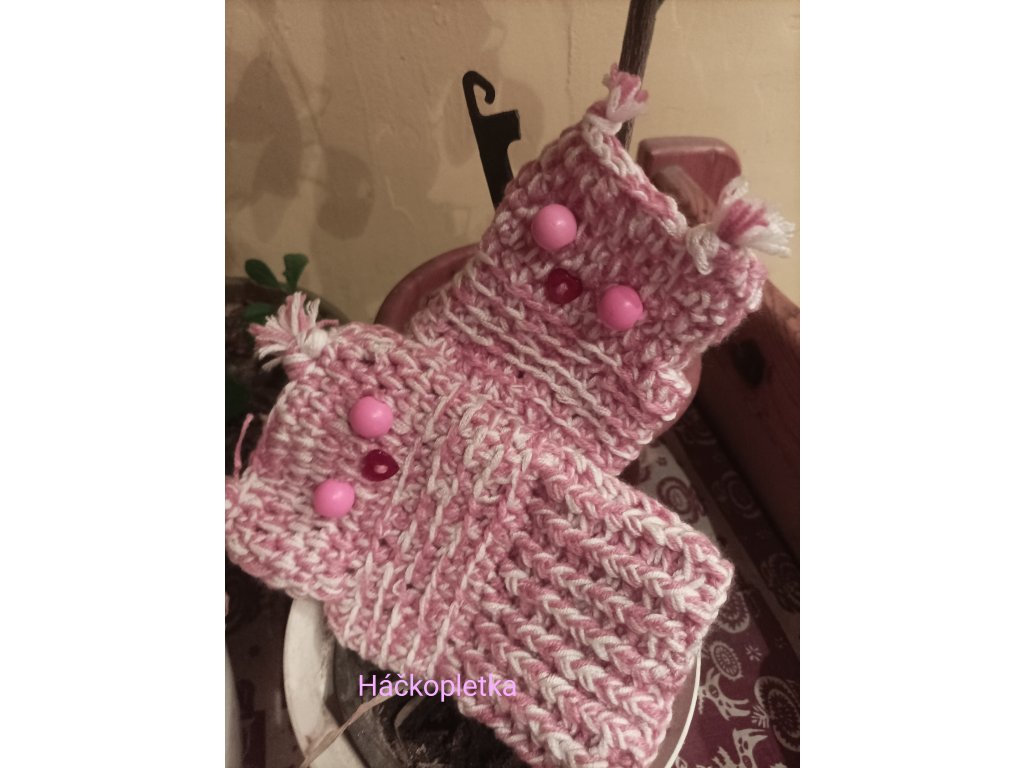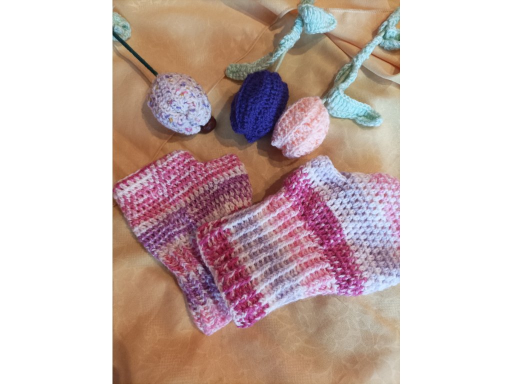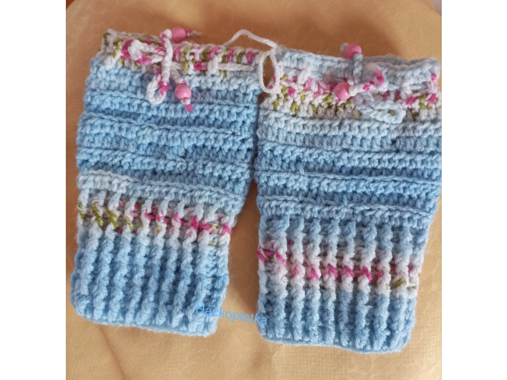 🧤5.Když kytky kvetou- bezprsťáky karpálníčky z melírované jemné akrylové příze háčkované.Ruční praní.