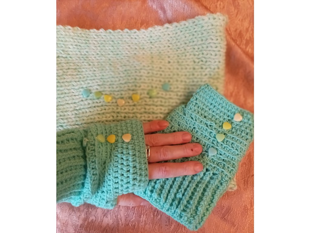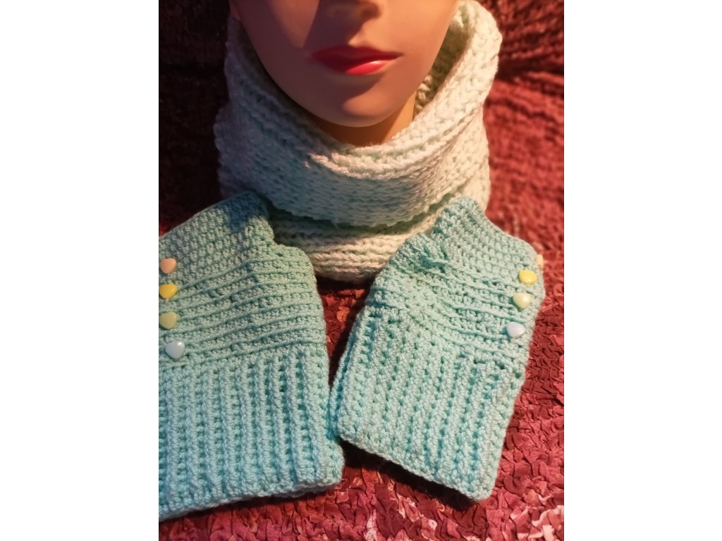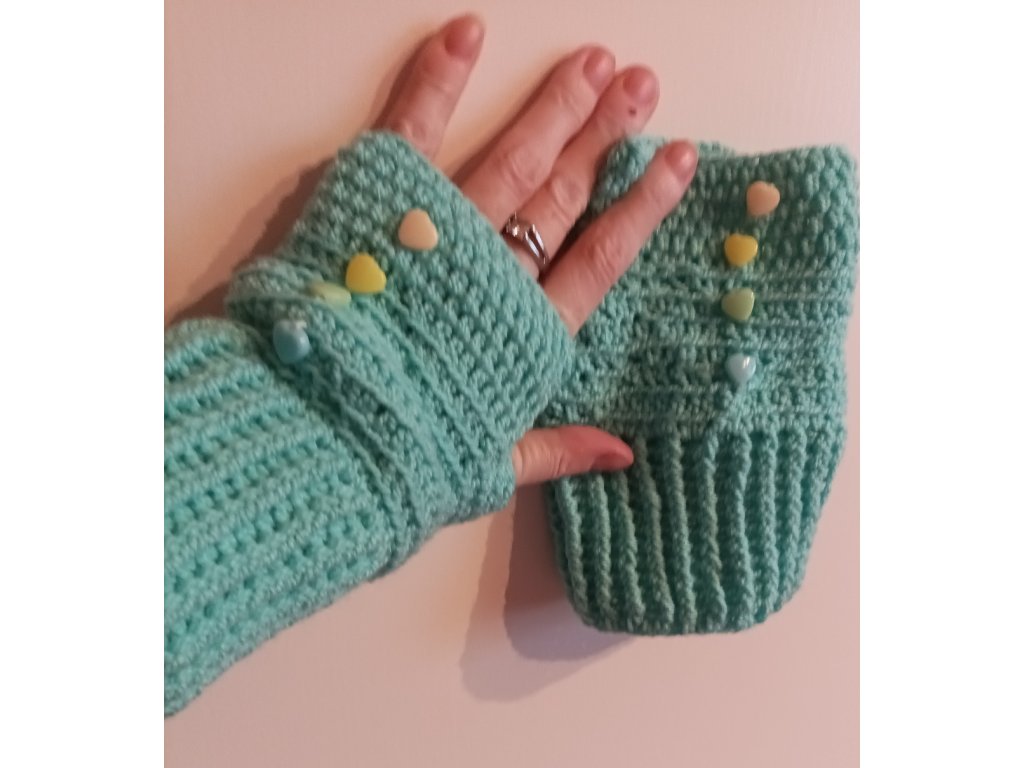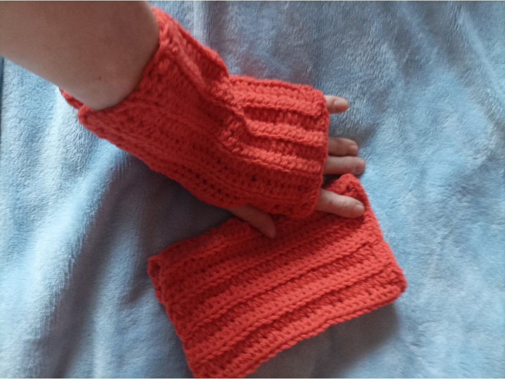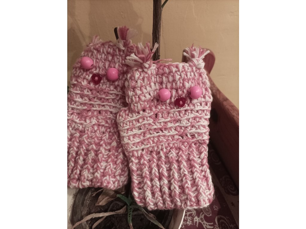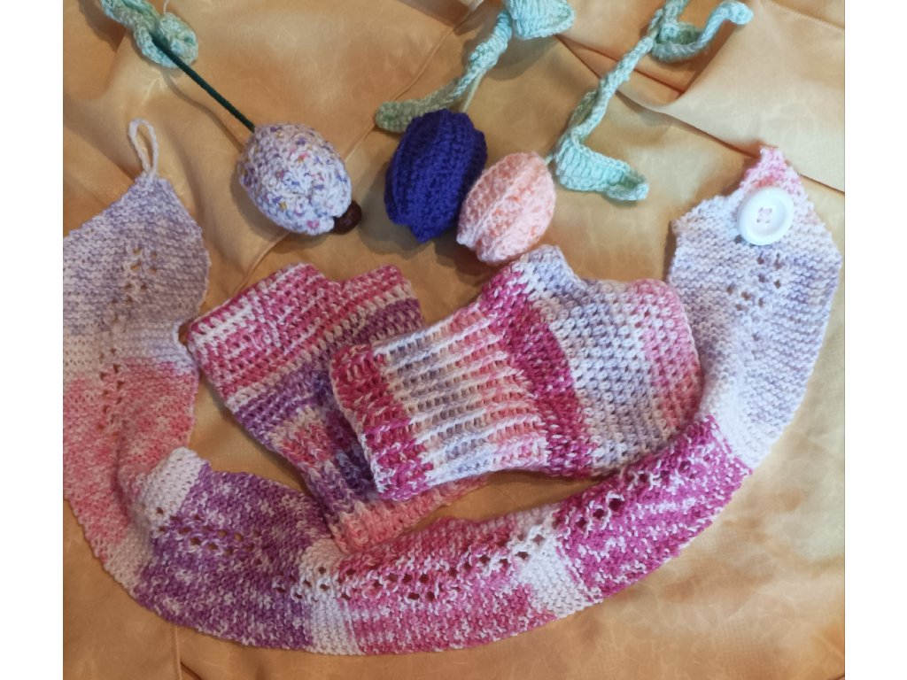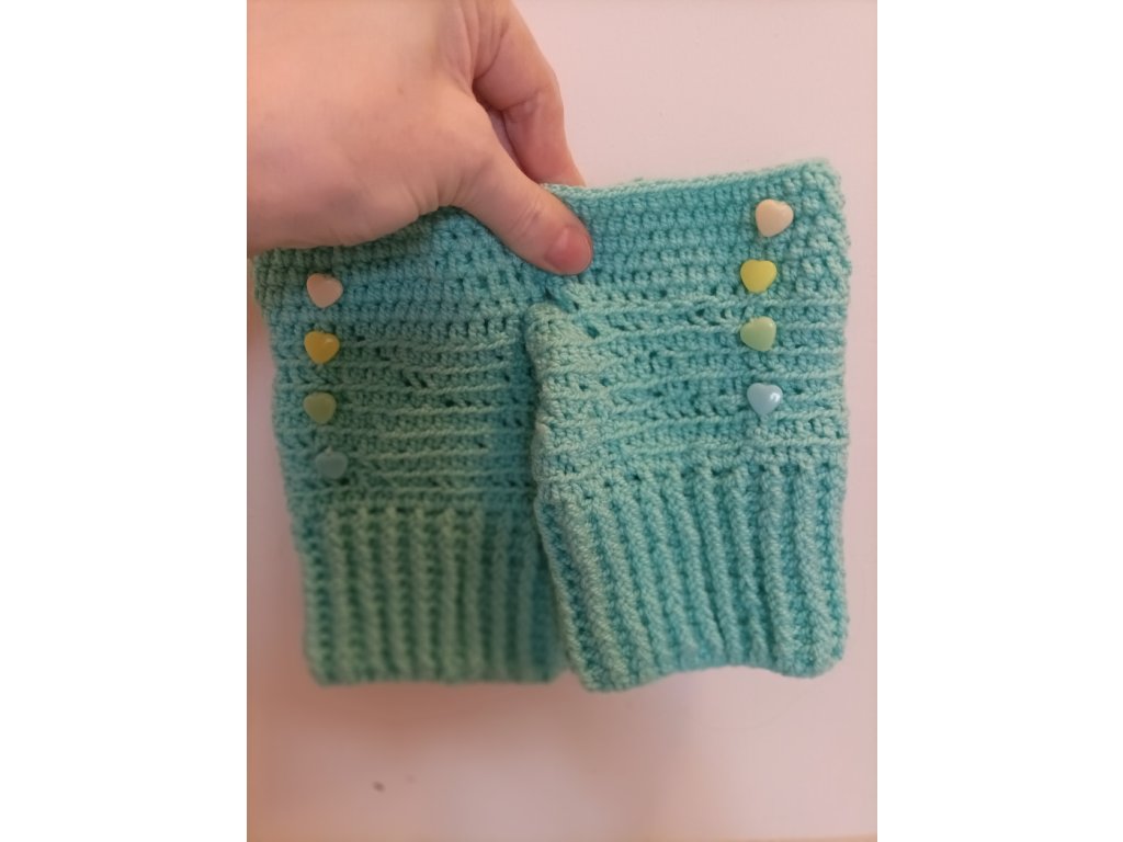 🧤5.Když kytky kvetou- bezprsťáky karpálníčky z melírované jemné akrylové příze háčkované.Ruční praní.