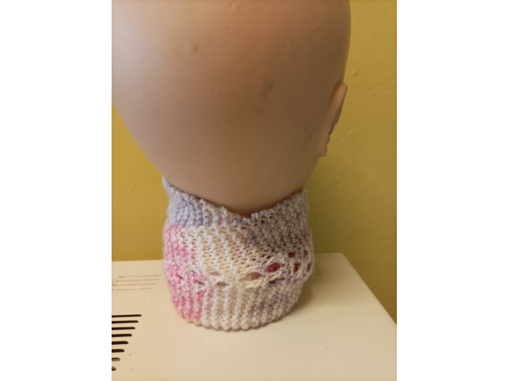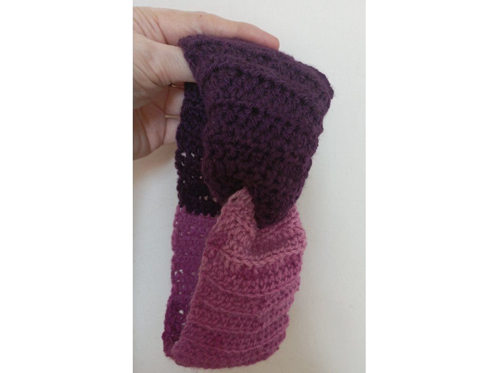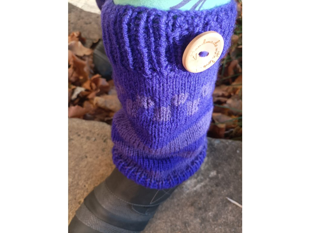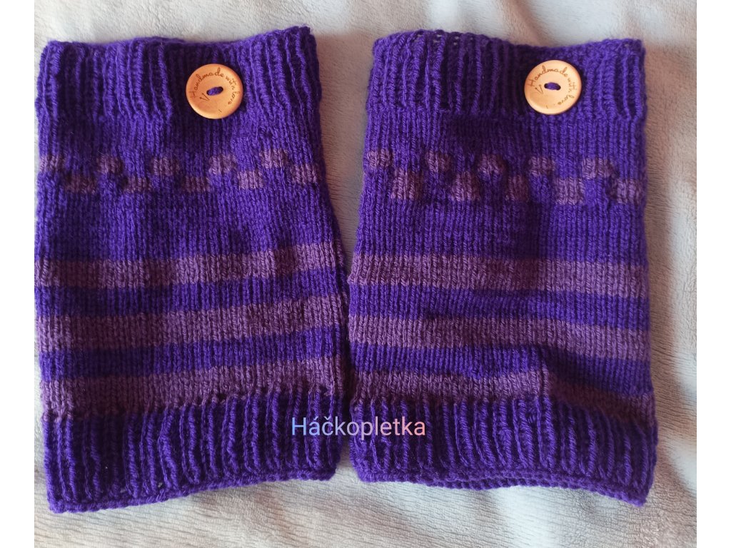 💜21. Fialové návleky na nožky pletené z dvou barev akrylové příze.Obvod 36 cm, výška 25 cm.Ruční praní