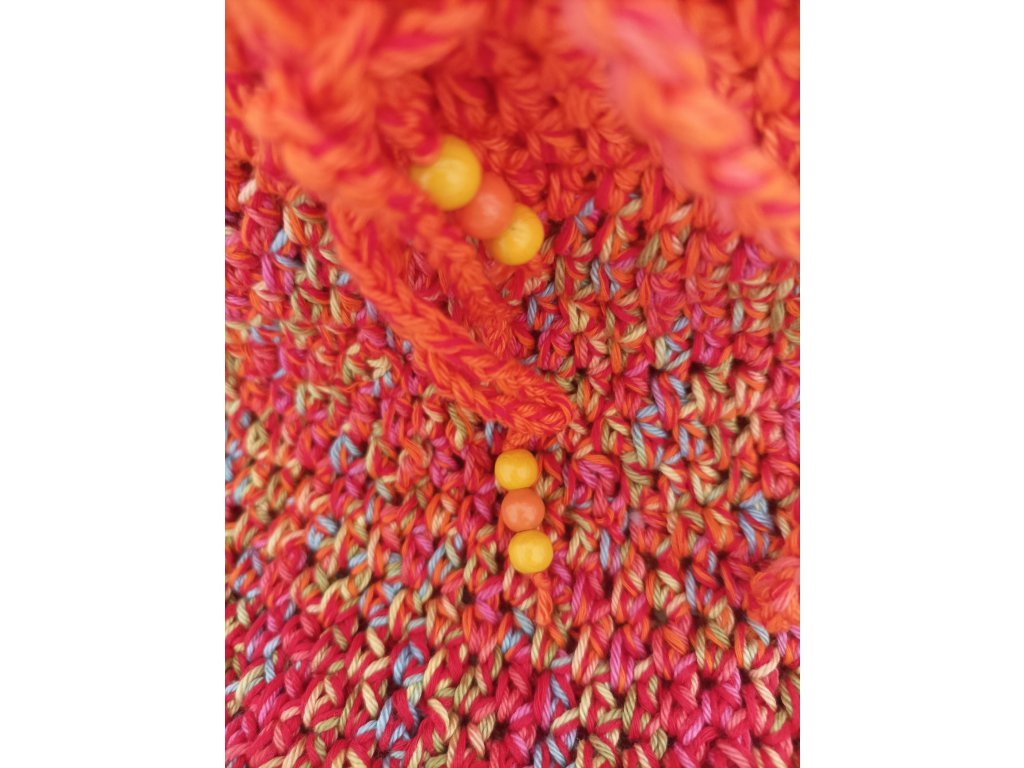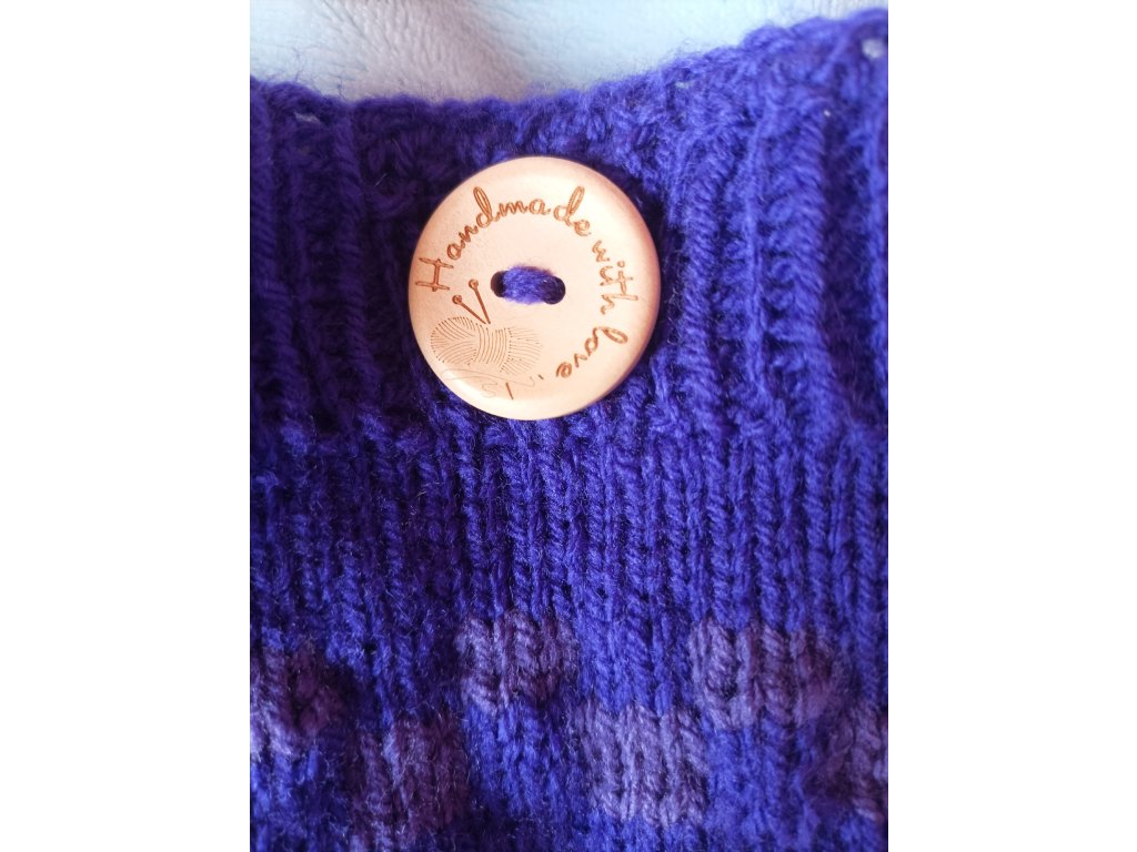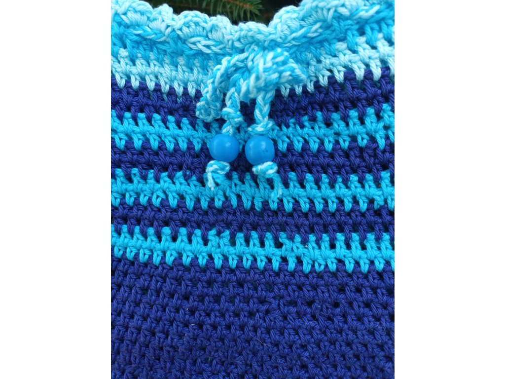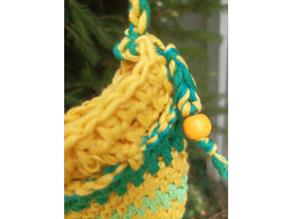 Vyrobené z akrylové a bavlněné příze,dutinkové výplně a dozdobený korálky a knoflíčky, potahovací ručky, obličej.