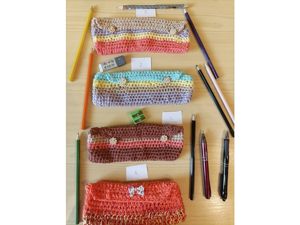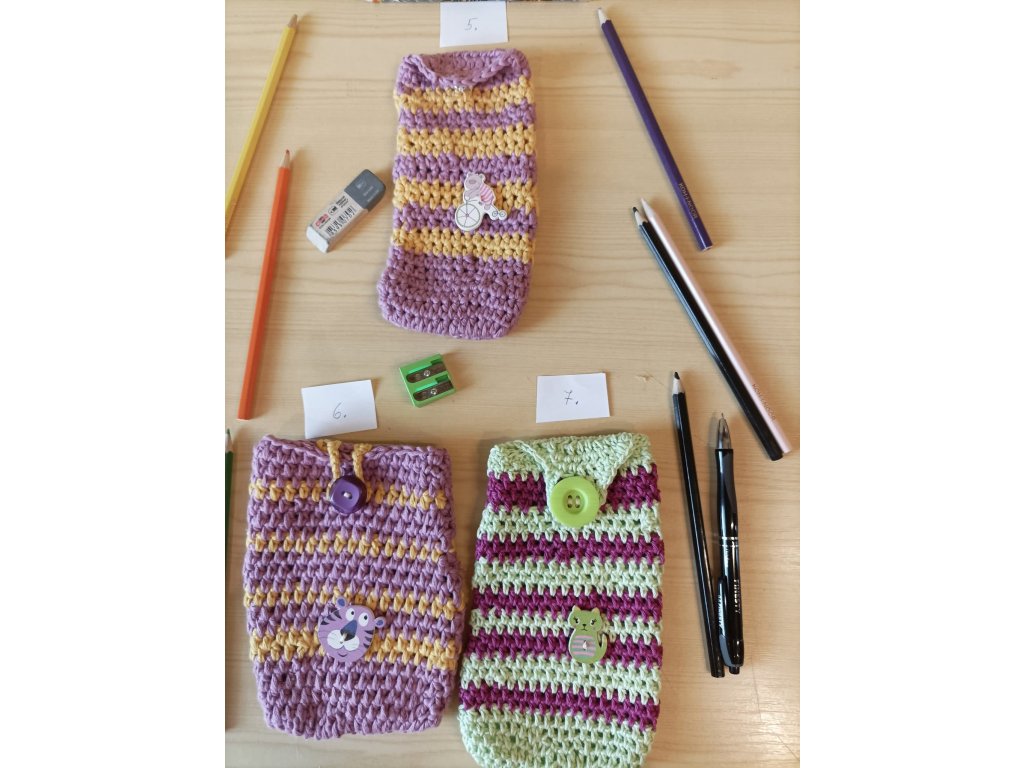 2.🖌️🖊️🖍️Veselé tužkovníky- háčkované pouzdra na pera, tužky, pastelky i gumu a ořezávátko.
