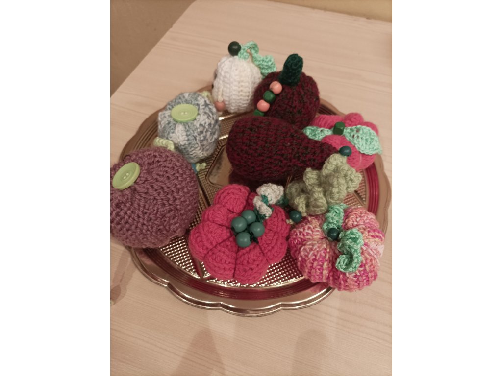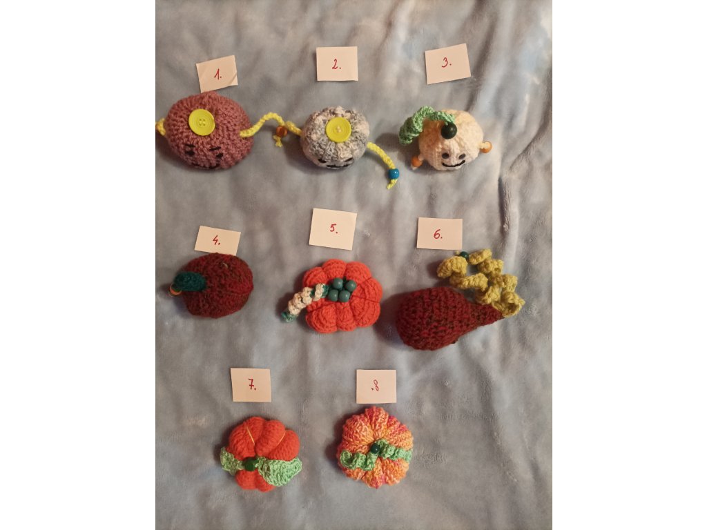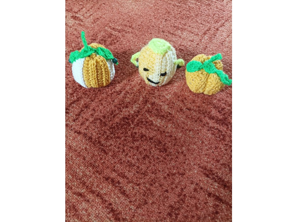 🎃9. Dekorační dýně z bavlny a akrylu,zdobené, háčkované i pletené.Do vnitřních prostor.Velikist 6-8 cm.