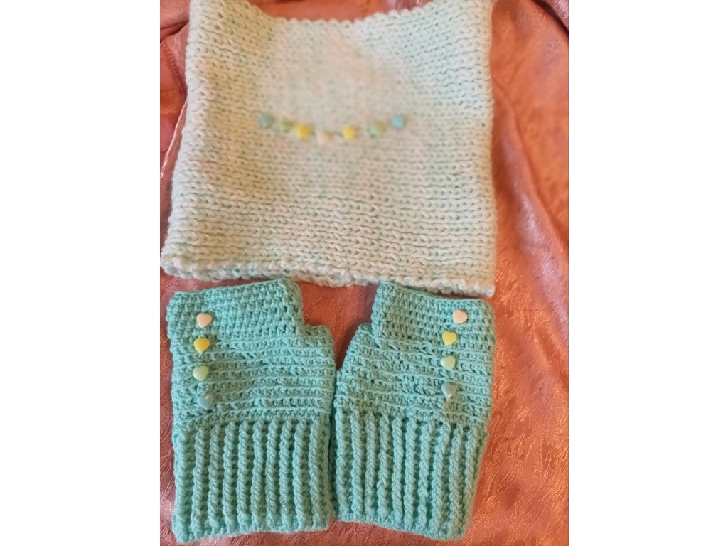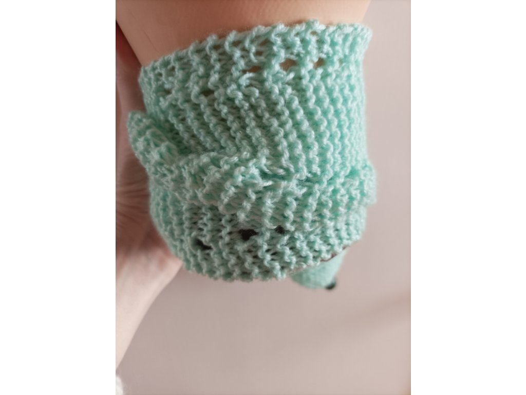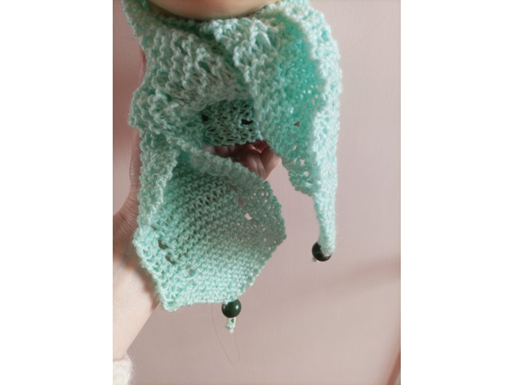 4.Cikcak šátkošála Mint- pletená s krajkovým vzorkem, zdobená korálky.Délka cca 115 cm.Vhodná do podzimních plískanic,na procházky,několik možností vázání kolem krku,na culík nebo na kabelku.Praní v pračce na 30 stupňů v síťce, materiál akryl