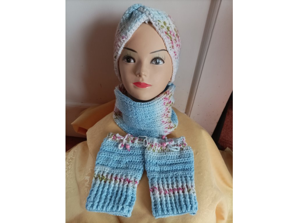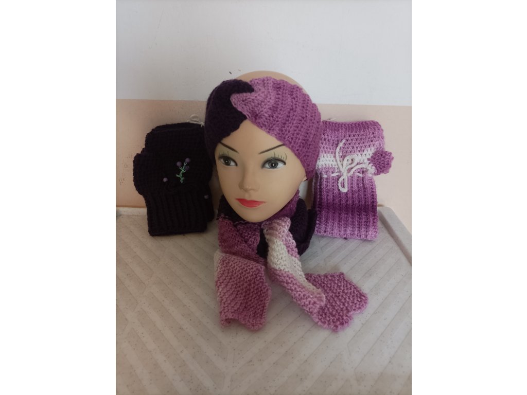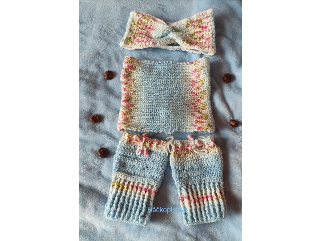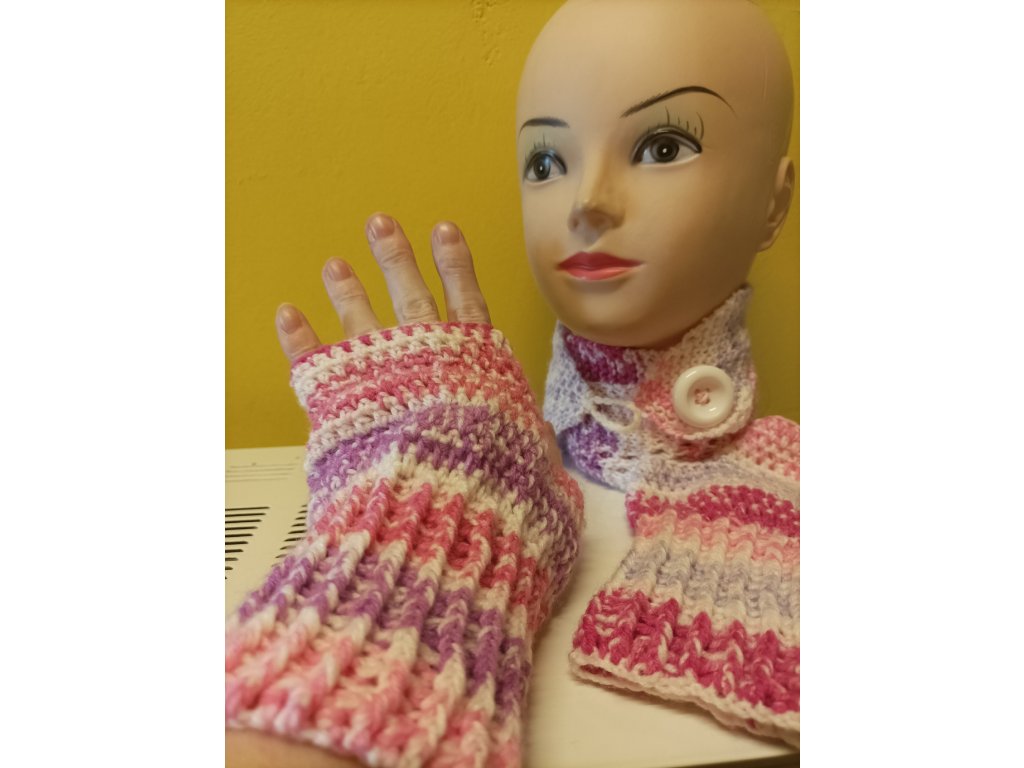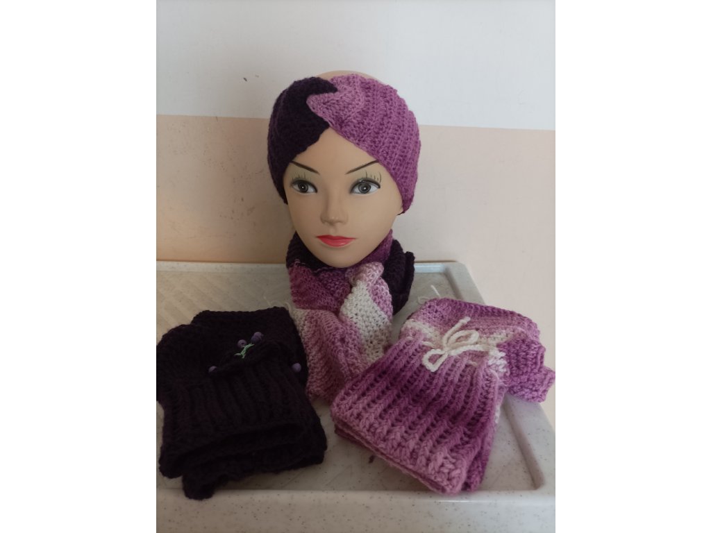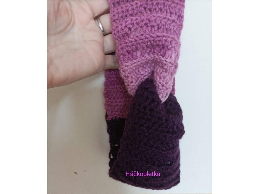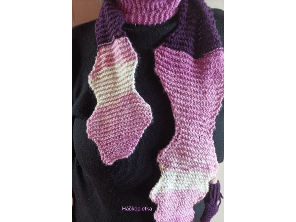 10. V barvách šeříku - dámská sada čelenka 290 Kč, Vlnkošála 590 Kč, bezprsťáky karpálníčky 2 barevné varianty,každé za 399 Kč.