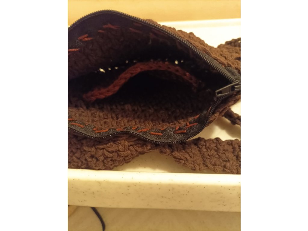 3.💼 Hnědá háčkovaná pánská kabelka z bavlněných šňůr - popruhy na karabince se dají odepnout a nahradit poutkem na ruku.Dá se nosit přes rameno,jako crossbody nebo v ruce.Má kapsičku na mobil a kapsičky na jiné potřebné maličkosti. Zapínání na zip,kapsa na mobil má zapínání na patentku.Praktický módní doplněk pro muže, oblíbený.