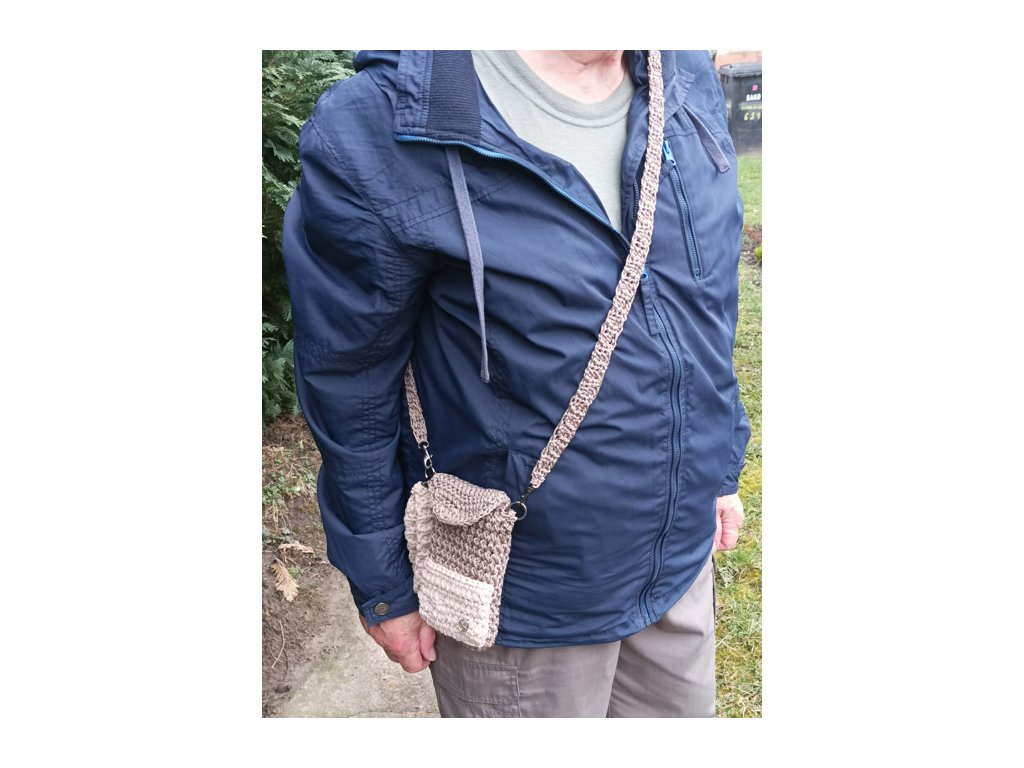 💼1.Pánská taštička hnědá s béžovou na mobil s kapsičkou na drobnosti je háčkovaná z bavlněných šňůr. Háčkované popruhy jsou na karabinkách a dají se snadno vyměnit za poutko na ruku. Taštičku lze nosit na několik způsobů: jako crossbody, přes rameno nebo jen na poutku v ruce. Kapsička na mobil má praktické zapínání na patentky. Taštičku si oblíbí všichni muži, je praktická na každodenní nošení, chrání mobil před pádem a znečištěním. Po domluvě ji můžu vyrobit i na zakázku do 7 dnů v jiných barvách. Praní v pračce na 30 stupňů doporučuji v sáčku na jemné prádlo.