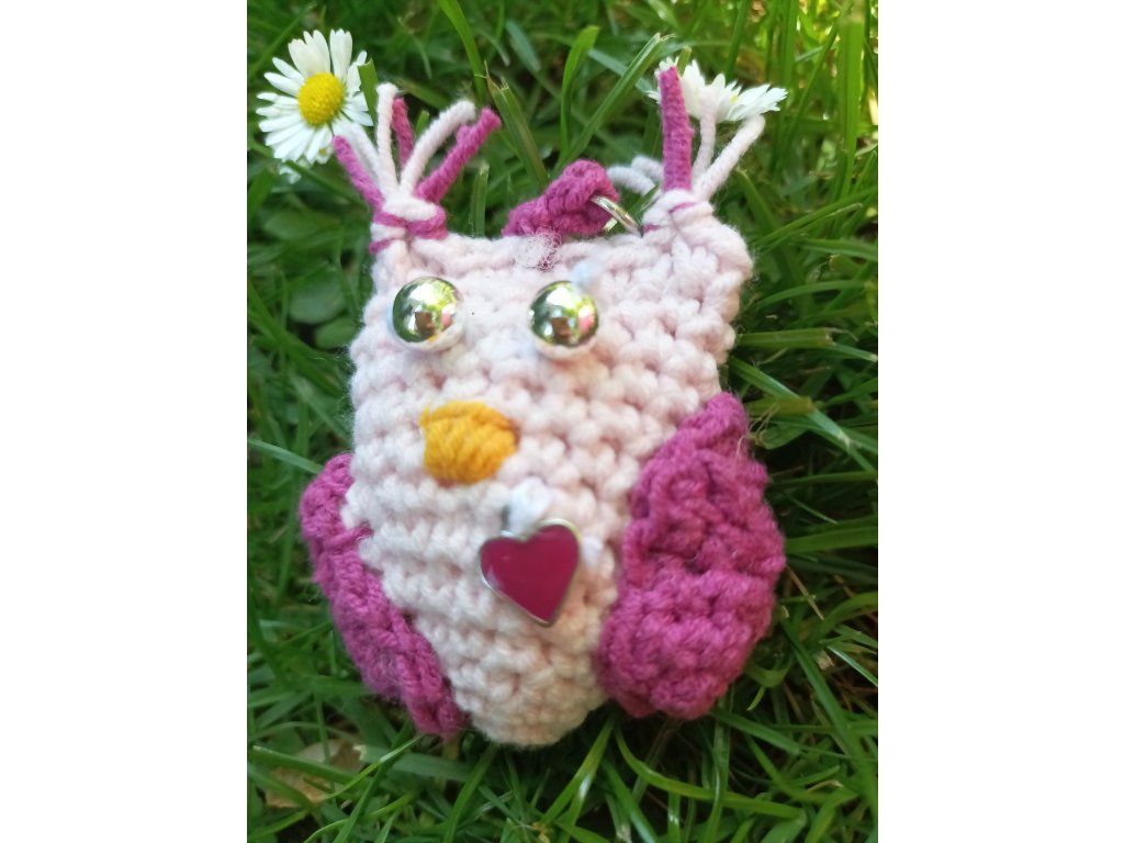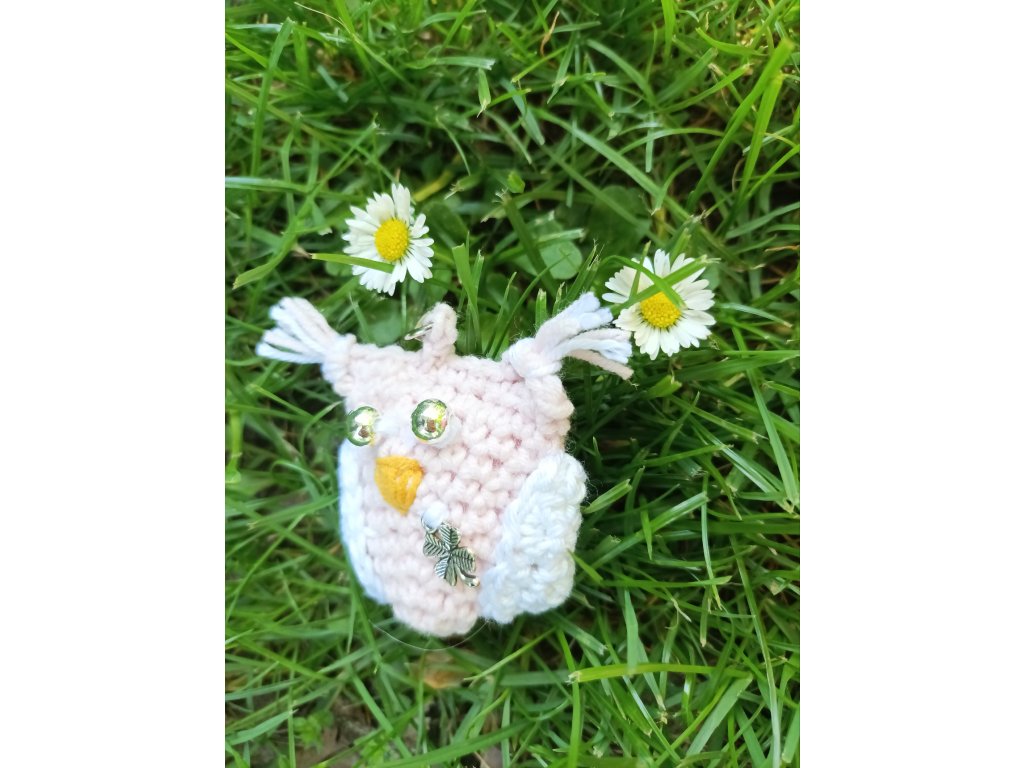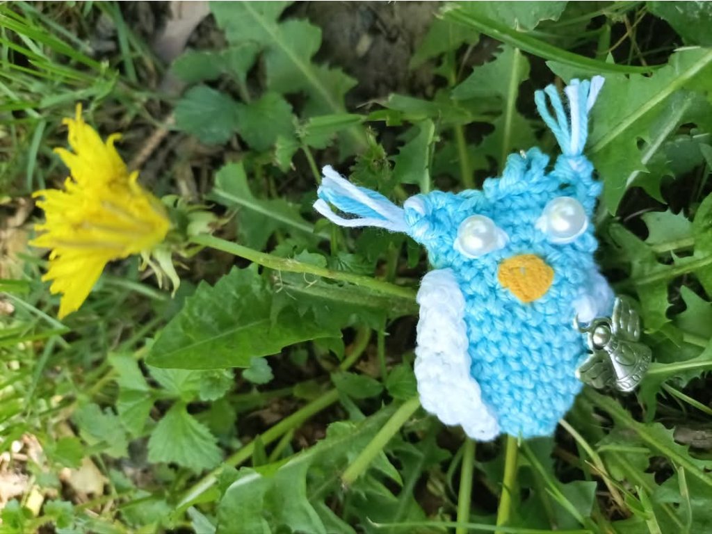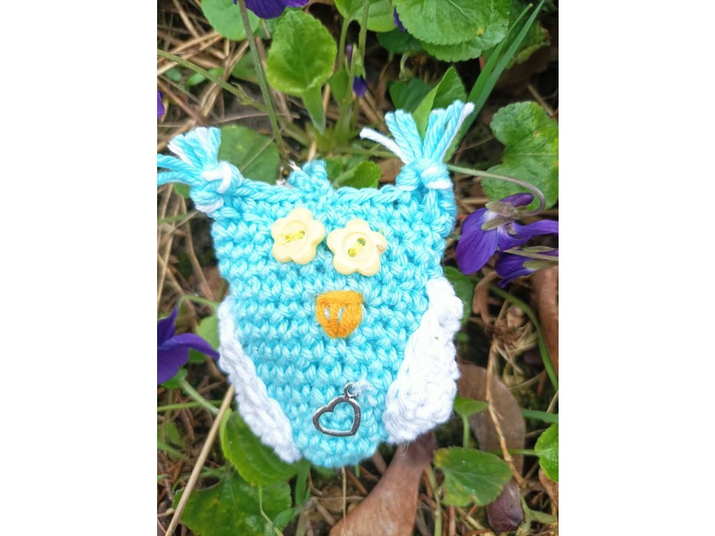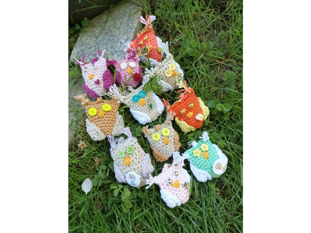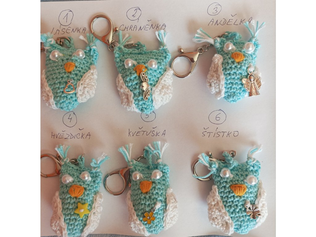 Ručně háčkované sovičky jako přívěsky pro štěstí, lásku a naději. Každá má své jméno podle symbolu, který nese.